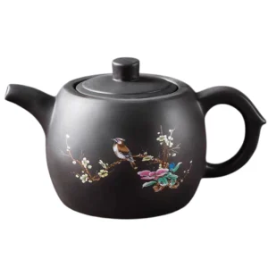 Елегантний чайник із ісинської глини, прикрашений тонкий живописом, що зображує птаха на гілці квітучого дерева — символ весни, гармонії та життєвої сили. Завдяки пористій структурі глини, чайник рівномірно прогріває чай і зберігає його тепло, дозволяючи розкрити всі відтінки аромату. З об’ємом 500 мл він ідеально підходить для натхненних чаювань у великій компанії.