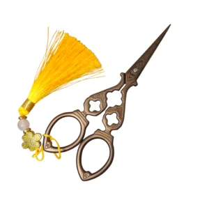 Вишукані чайні ножиці, створені для тих, хто цінує гармонію краси й практичності. Тонкі леза забезпечують акуратне розрізання упаковок і ниток, не порушуючи естетики чайної церемонії. Дизайн, натхненний стародавнім символом єдності та взаємної підтримки, створює атмосферу внутрішнього балансу, а яскрава китиця на ручці додає святкового настрою. Ножиці зручні, збалансовані, а їхній сріблястий тон і витончена різьба гармонійно контрастують із класичним чайним посудом.