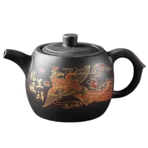 Елегантний чайник із ісинської глини, прикрашений яскравими образами Дракона і Фенікса, що символізують ідеальну гармонію Інь і Ян та процвітання. Завдяки пористій структурі глини, чайник рівномірно прогріває чай і зберігає його тепло, дозволяючи розкрити всі відтінки аромату. З об’ємом 500 мл він ідеально підходить для натхненних чаювань у великій компанії.