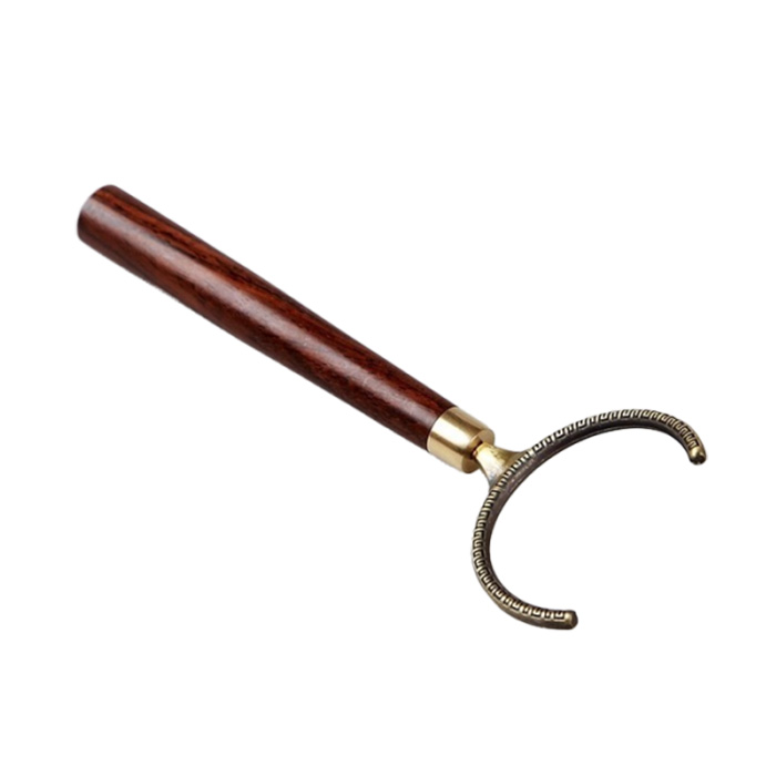 Вигнутий пінцет є зручним інструментом для роботи з пресованими чаями, такими як пуер. З його допомогою можна легко відокремлювати шматочки від чайного млинця, не пошкоджуючи тендітне чайне листя. Його форма дозволяє зручно захоплювати і контролювати крихкі шматочки чаю, запобігаючи їхньому розсипанню.