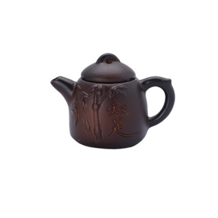 Чайник виготовлений із якісної кераміки й має зручну металеву ручку, обмотану ниткою — це забезпечує теплоізоляцію, комфорт при триманні та додає чайнику автентичного вигляду. Керамічний корпус добре утримує тепло, підтримуючи стабільну температуру настою, що дозволяє чаю повністю розкритися. Глянцева внутрішня поверхня не вбирає аромати й смак, що робить такий посуд універсальним. Набір можна використовувати для різних сортів чаю без ризику змішування запахів і смаків. Глянцева внутрішня поверхня добре контрастує з матовим зовнішнім шаром, створюючи приємний візуальний ефект.