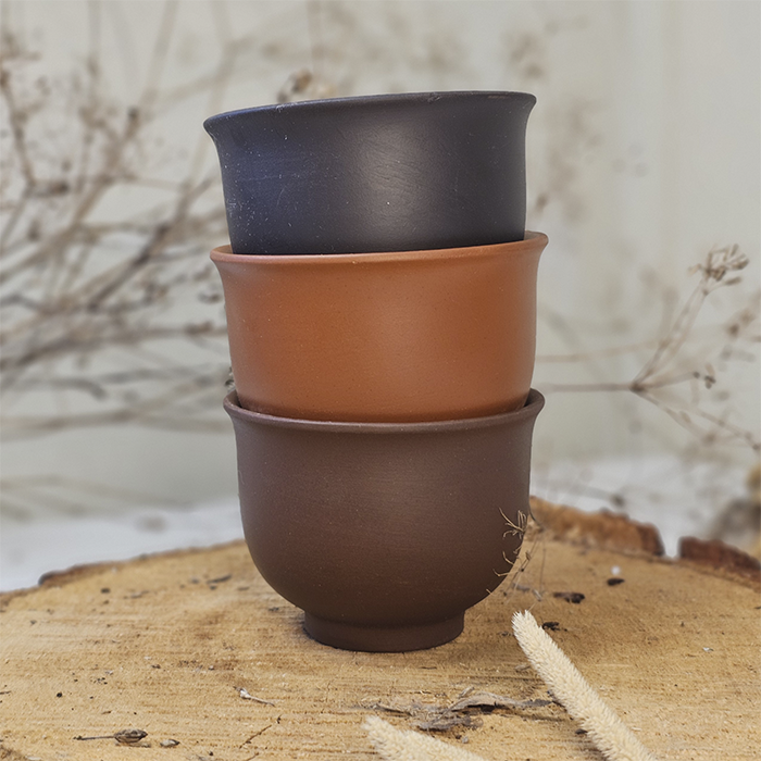 Форма кубка підкреслює природну красу глини й водночас зручна у використанні. Лаконічний силует із плавним розширенням догори створює ідеальні умови для розкриття аромату. Завдяки цій формі напій розкривається рівномірно: температура зберігається стабільною, аромат розподіляється м’яко. Піала виглядає стримано, але водночас урочисто, нагадуючи маленький чайний келих. Вона чудово підходить як для щоденного чаювання, так і для неспішних, медитативних церемоній.