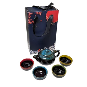 Изысканный чайный набор, покрытый волшебной глазурью, которая напоминает далекие космические миры. Этот набор дарит вдохновение и создает атмосферу гармоничного созерцания. Глубокий коричневый цвет исинской глины с изящными синими узорами, напоминающими космос, добавляет изделиям неповторимую эстетику. В наборе – элегантный чайник и четыре пиалы, упакованные в красиво оформленную картонную коробку, что делает этот комплект идеальным подарком.
